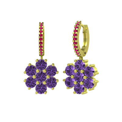 Ametist ve rodolit garnet 925 ayar altın kaplama gümüş küpe