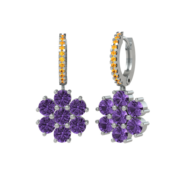 Ametist ve sitrin 8 ayar beyaz altın küpe