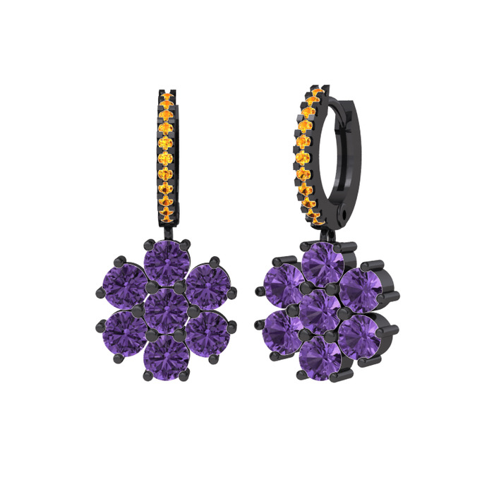 Ametist ve sitrin 925 ayar siyah rodyum kaplama gümüş küpe