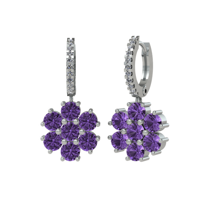 Ametist ve swarovski 14 ayar beyaz altın küpe