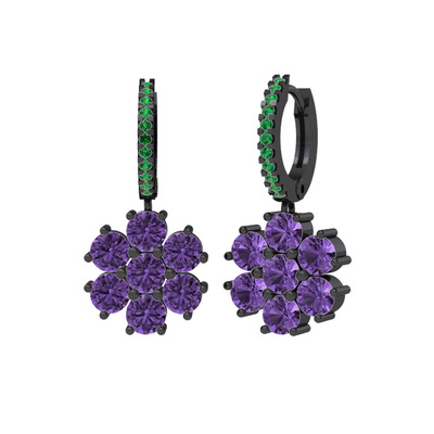 Ametist ve yeşil kuvars 925 ayar siyah rodyum kaplama gümüş küpe
