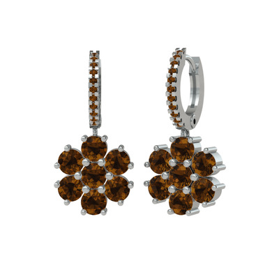 Dumanlı kuvars 18 ayar beyaz altın küpe