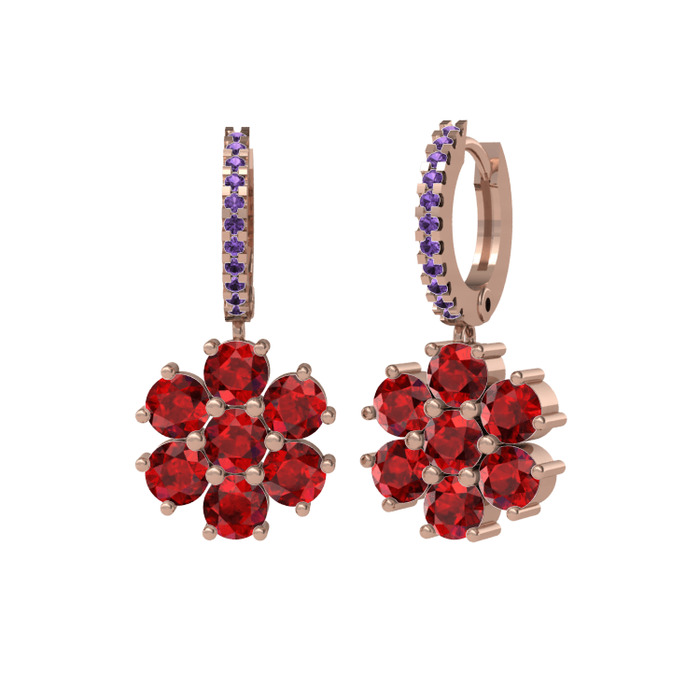 Garnet ve ametist 8 ayar rose altın küpe