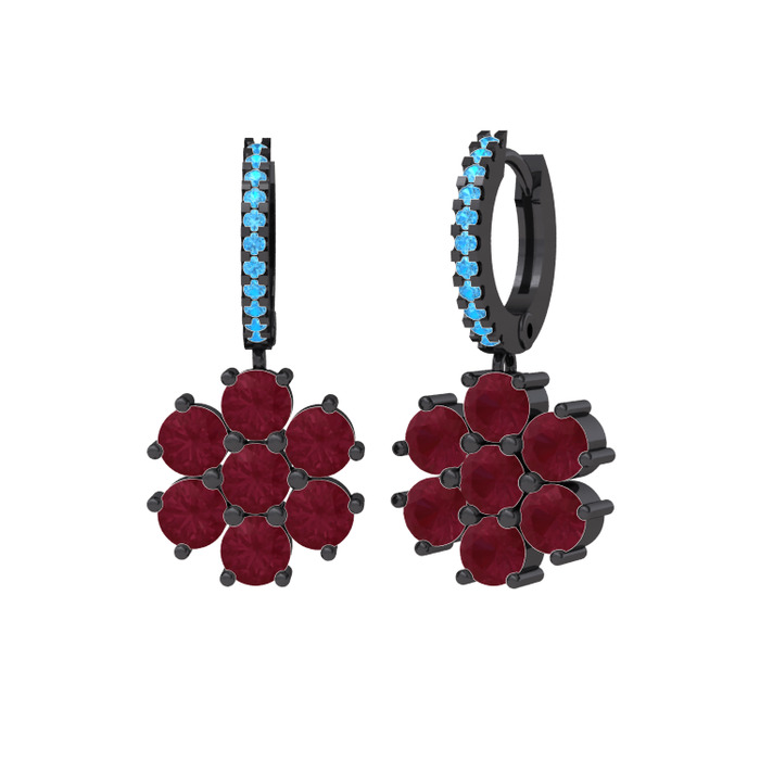 Kök yakut ve akuamarin 925 ayar siyah rodyum kaplama gümüş küpe