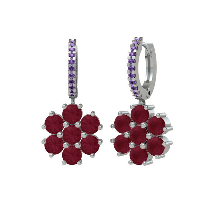 Kök yakut ve ametist 14 ayar beyaz altın küpe