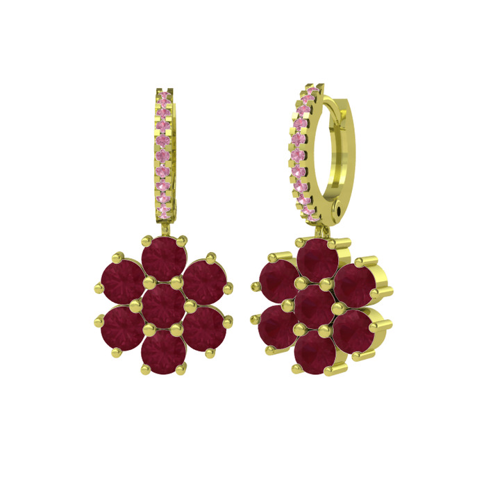 Kök yakut ve pembe kuvars 925 ayar altın kaplama gümüş küpe