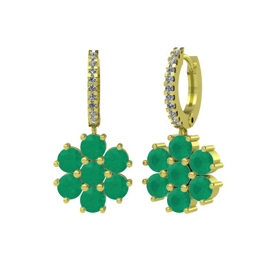 Kök zümrüt ve beyaz zirkon 18 ayar altın küpe