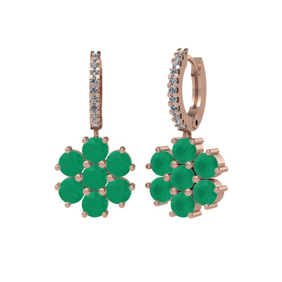 Kök zümrüt ve beyaz zirkon 925 ayar rose altın kaplama gümüş küpe