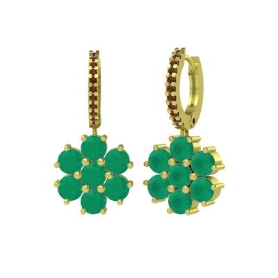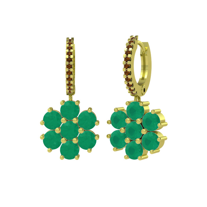 Kök zümrüt ve dumanlı kuvars 8 ayar altın küpe