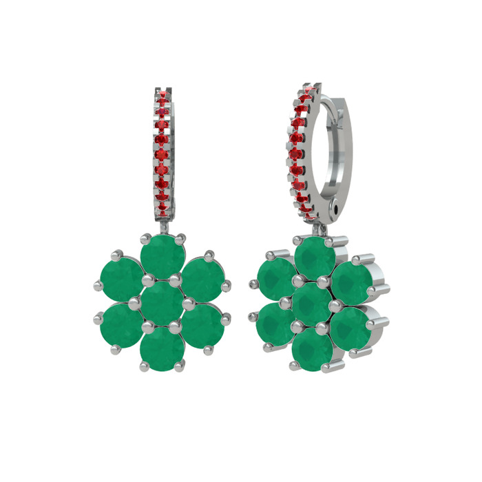 Kök zümrüt ve garnet 925 ayar gümüş küpe