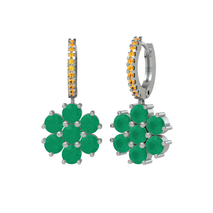 Kök zümrüt ve sitrin 925 ayar gümüş küpe