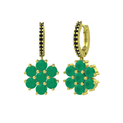 Kök zümrüt ve siyah zirkon 18 ayar altın küpe