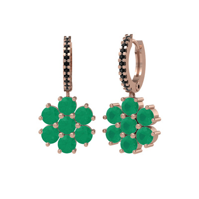 Kök zümrüt ve siyah zirkon 925 ayar rose altın kaplama gümüş küpe