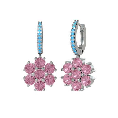 Pembe kuvars ve akuamarin 8 ayar beyaz altın küpe