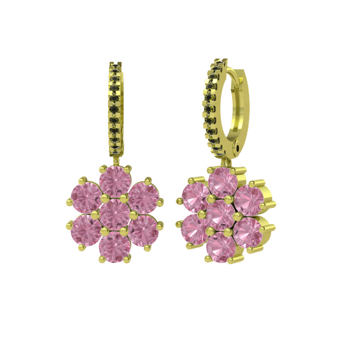 Pembe kuvars ve peridot 18 ayar altın küpe