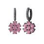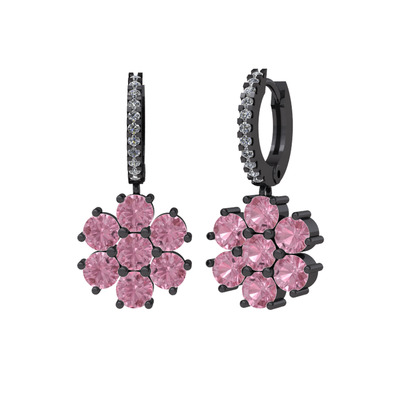 Pembe kuvars ve pırlanta 925 ayar siyah rodyum kaplama gümüş küpe (0.198 karat)