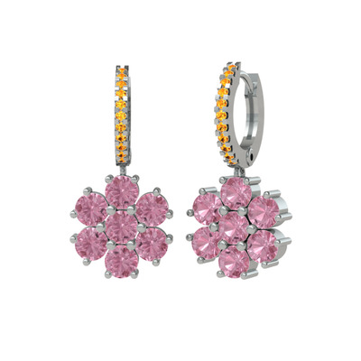 Pembe kuvars ve sitrin 18 ayar beyaz altın küpe