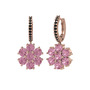 Pembe kuvars ve siyah zirkon 14 ayar rose altın küpe