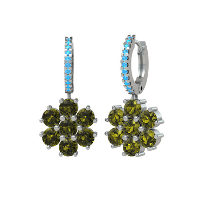 Peridot ve akuamarin 18 ayar beyaz altın küpe