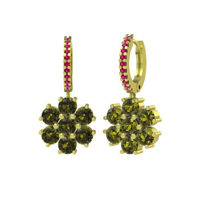 Peridot ve rodolit garnet 8 ayar altın küpe