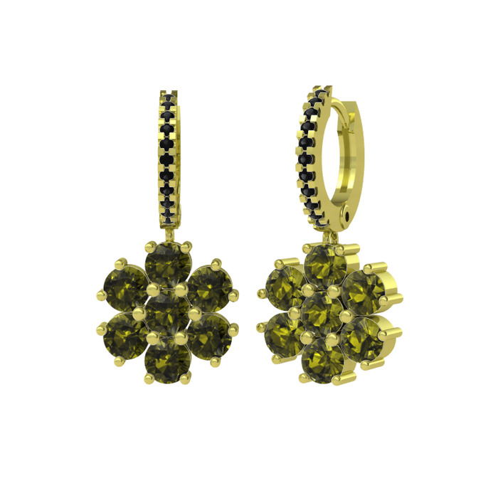 Peridot ve siyah zirkon 8 ayar altın küpe