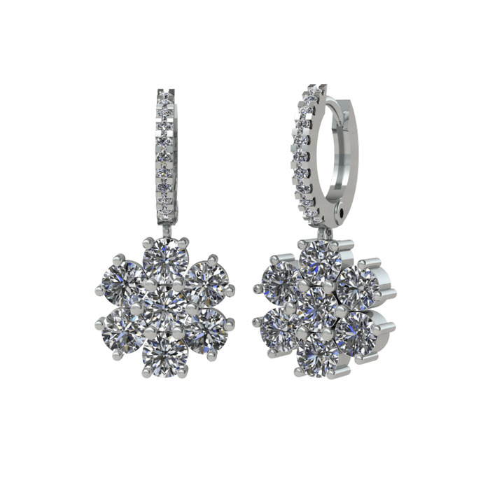 Pırlanta ve beyaz zirkon 14 ayar beyaz altın küpe (3.36 karat)