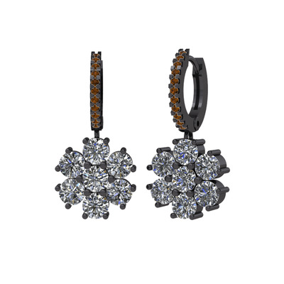 Pırlanta ve dumanlı kuvars 925 ayar siyah rodyum kaplama gümüş küpe (3.36 karat)