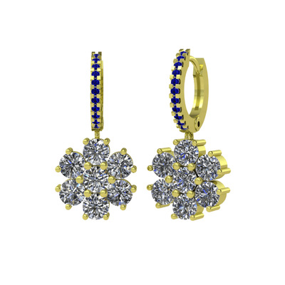Pırlanta ve lab safir 14 ayar altın küpe (3.36 karat)
