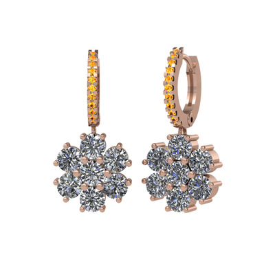 Pırlanta ve sitrin 8 ayar rose altın küpe (3.36 karat)