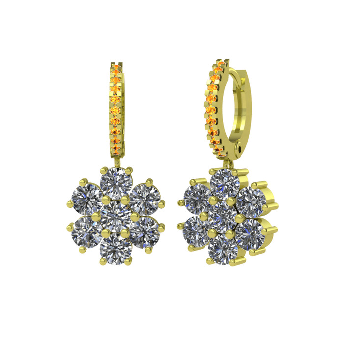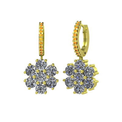Pırlanta ve sitrin 925 ayar altın kaplama gümüş küpe (3.36 karat)