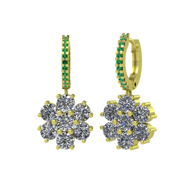 Pırlanta ve yeşil kuvars 8 ayar altın küpe (3.36 karat)