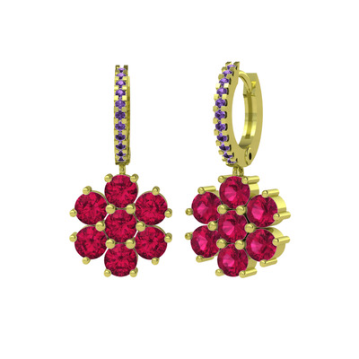 Rodolit garnet ve ametist 14 ayar altın küpe