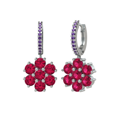 Rodolit garnet ve ametist 18 ayar beyaz altın küpe