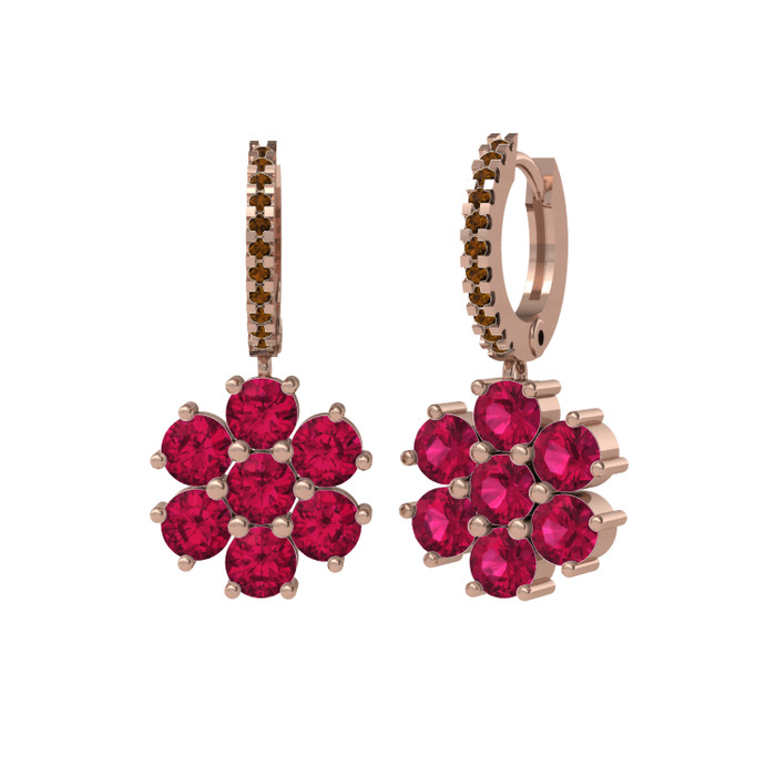 Rodolit garnet ve dumanlı kuvars 8 ayar rose altın küpe