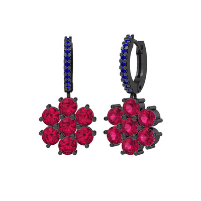 Rodolit garnet ve lab safir 925 ayar siyah rodyum kaplama gümüş küpe