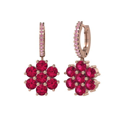 Rodolit garnet ve pembe kuvars 14 ayar rose altın küpe
