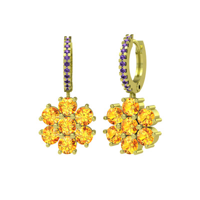 Sitrin ve ametist 14 ayar altın küpe