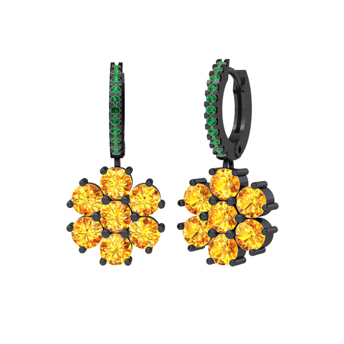 Sitrin ve yeşil kuvars 925 ayar siyah rodyum kaplama gümüş küpe