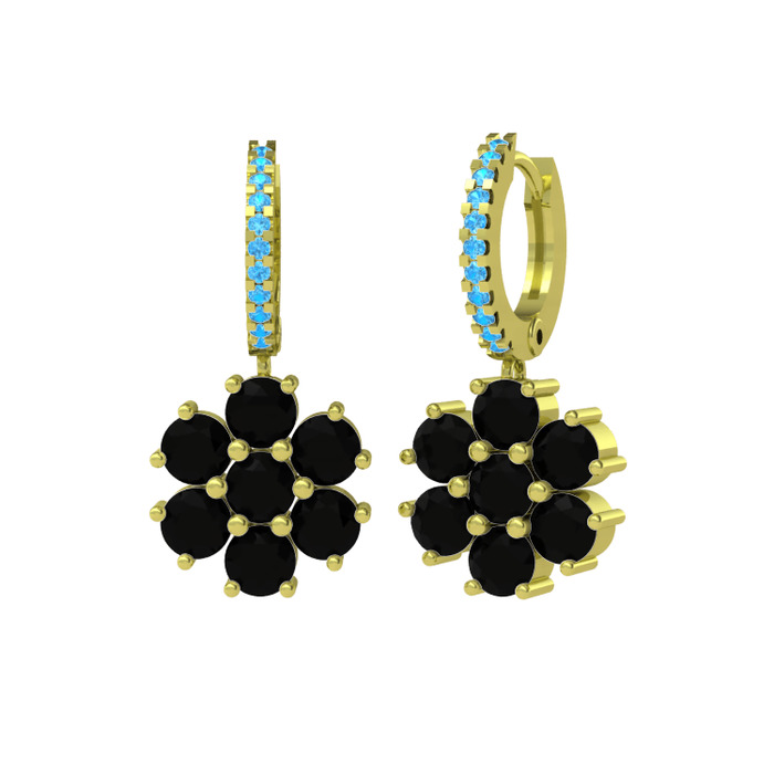 Siyah zirkon ve akuamarin 8 ayar altın küpe