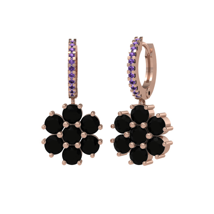 Siyah zirkon ve ametist 8 ayar rose altın küpe