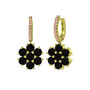 Siyah zirkon ve pembe kuvars 18 ayar altın küpe