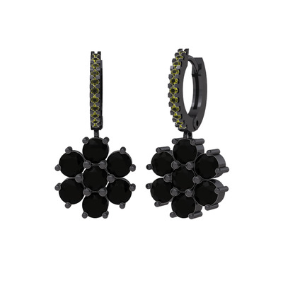 Siyah zirkon ve peridot 925 ayar siyah rodyum kaplama gümüş küpe