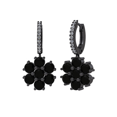 Siyah zirkon ve pırlanta 925 ayar siyah rodyum kaplama gümüş küpe (0.198 karat)
