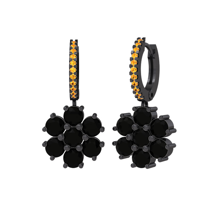 Siyah zirkon ve sitrin 925 ayar siyah rodyum kaplama gümüş küpe