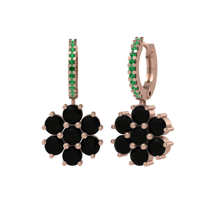 Siyah zirkon ve yeşil kuvars 14 ayar rose altın küpe