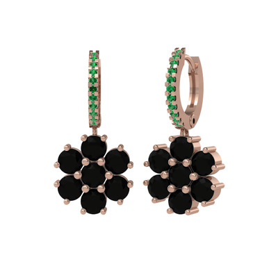 Siyah zirkon ve yeşil kuvars 8 ayar rose altın küpe
