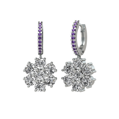 Swarovski ve ametist 18 ayar beyaz altın küpe