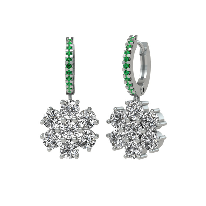 Swarovski ve yeşil kuvars 18 ayar beyaz altın küpe