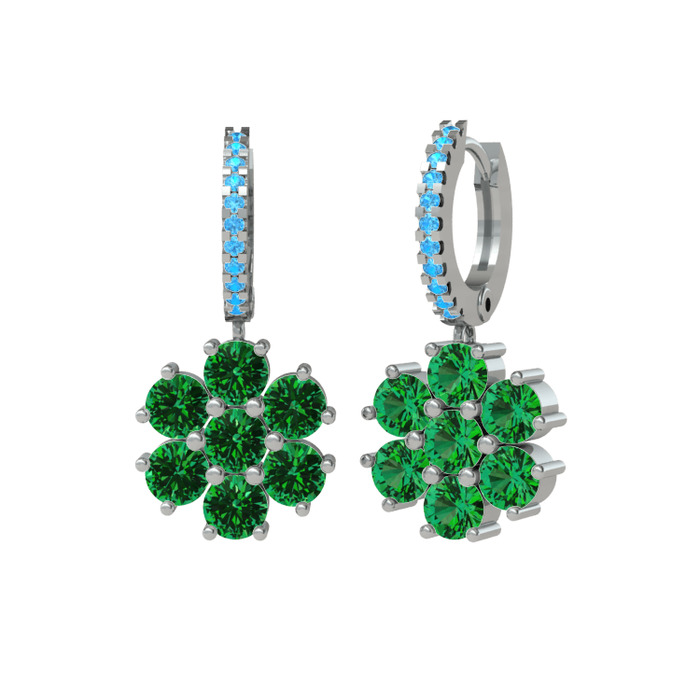 Yeşil kuvars ve akuamarin 8 ayar beyaz altın küpe