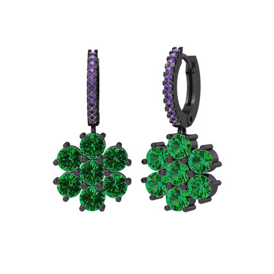 Yeşil kuvars ve ametist 925 ayar siyah rodyum kaplama gümüş küpe
